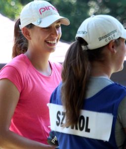 On Sunday, I caddied for the leader after Round Two, Elizabeth Szokol, 2017 tour rookie and Chicago native.
